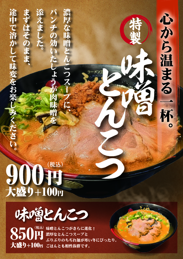 この冬初登場の「特製味噌とんこつ」を販売いたします!